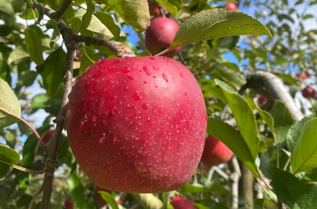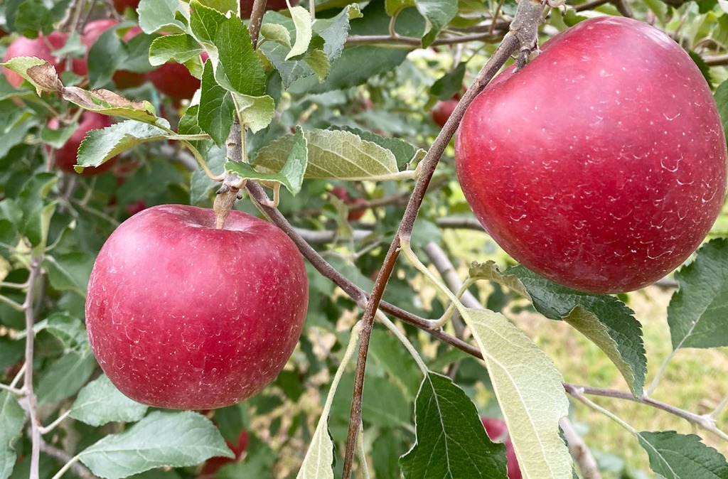 収穫時期:10月上旬果重:180~200gと小玉果皮:紅玉は果皮が真っ赤に染まる味:酸味が強くて香りもよく、生のまま食べると甘酸っぱくて濃厚な味わいを楽しめる特徴:紅玉は調理・加工に適していて、お菓子作りなどによく利用される
